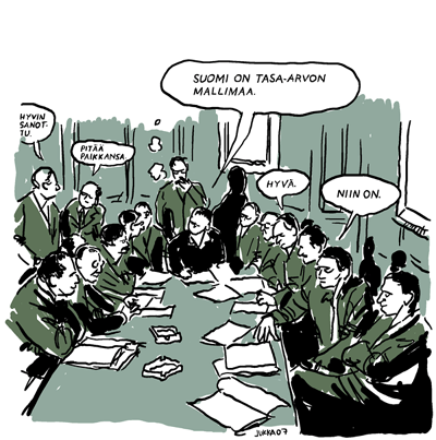 Se että Suomen tasa-arvo-ongelmat eivät ole niin pahoja kuin muualla, aiheuttaa helposti sen, että näitä ongelmia esillä pitäviä pidetään kiittämättöminä valittajina. Vaikka täällä nainen ei olekaan miehensä omaisuutta, nainen saa luoda uraa ja päivähoidosta huolehditaan, ei meillä ole mitään syytä tyytyä puolivalmiiseen yhteiskuntaan.